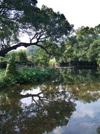 婺源的田園風(fēng)光,可概括地形容為“水繞村莊”。有水的地方就有村子,有村子的地方就可以看見溪流。鄉(xiāng)村小道兩邊飛檐翹角,灰瓦白墻的徽州民居,錯(cuò)落有致地鑲嵌在修竹掩映的林間。