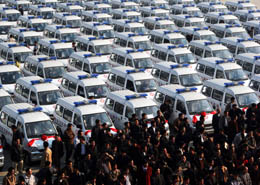 當日,廣西近年來最大規(guī)模的一次救護車發(fā)放儀式在南寧市舉行,廣西壯族自治區(qū)衛(wèi)生廳將190輛救護車贈送給全區(qū)各地190個鄉(xiāng)鎮(zhèn)衛(wèi)生院,以進一步改善廣西鄉(xiāng)鎮(zhèn)衛(wèi)生院缺乏交通工具的狀況,改善其基本裝備水平,提升其急診急救的能力和水平,進而提高全區(qū)應對公共衛(wèi)生突發(fā)事件的能力。 |