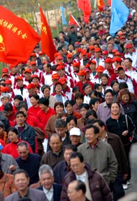 1月5日,上萬(wàn)名中老年人健步在福州市閩江畔。 當(dāng)日,以“全民健身與奧運(yùn)同行”為主題的2007年福州市“迎奧運(yùn)”中老年人萬(wàn)人健步行活動(dòng)在美麗的閩江畔舉行,福州市各縣區(qū)的5萬(wàn)多名老人同時(shí)參加了健步行活動(dòng)。