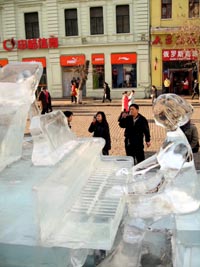 鋼琴冰雕亮相哈市引得游客駐足觀賞