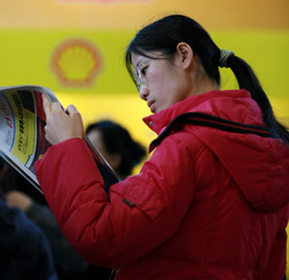 近日,第十五屆外國(guó)企業(yè)人才招聘交流會(huì)在北京中國(guó)國(guó)際展覽中心舉行,吸引眾多求職者到場(chǎng)應(yīng)聘。圖為求職者在北京舉辦的外企人才招聘會(huì)展臺(tái)前查看信息。