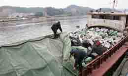 黃埔海關(guān)日前開(kāi)展了“春潮2007”海上緝私專項(xiàng)行動(dòng),查獲海上走私案件33宗,有效遏制了春節(jié)前后海上走私“紅油”、“應(yīng)節(jié)商品”等走私活動(dòng)的回潮趨勢(shì)。圖為黃埔海關(guān)緝私警察在現(xiàn)場(chǎng)檢查查獲的廢舊電腦、電視等走私物品。 |