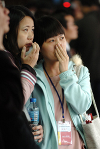 4月7日,臺灣畢業(yè)生唐庭怡(右)、楊秀麗(左)在廈門就業(yè)洽談會上找工作。當(dāng)天,第二屆“臺灣地區(qū)專業(yè)人才暨大學(xué)畢業(yè)生大陸就業(yè)洽談會”在廈門舉行,50多家招聘單位為近200名來自寶島臺灣的專業(yè)技術(shù)人才、畢業(yè)生及在大陸各地就學(xué)的臺籍學(xué)生提供了400多個職位。