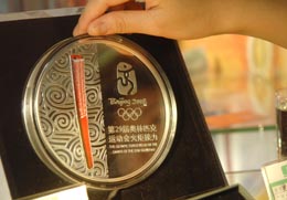 | “北京奧運(yùn)火炬接力”紀(jì)念章放進(jìn)柜臺(tái) |