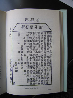 事情確實(shí)也如此,從有人提出引進(jìn)輪船和開辦西方式的新型企業(yè)到招商局成立,晚清朝野之間經(jīng)歷了十多年時(shí)間的徘徊、爭議、反對,障礙重重。如果不是李鴻章抱定此事是“毅然必行之事,破群議而為之”去進(jìn)行推動(dòng)的話,招商局還不可能在1872年成立。“招商局由李鴻章奏設(shè),局務(wù)應(yīng)由李鴻章主政”,出自總理衙門的這句話,除了進(jìn)一步確認(rèn)了招商局與李鴻章之間的關(guān)系外,也明確了企業(yè)的責(zé)任歸屬。這一點(diǎn),對于當(dāng)時(shí)社會裂變期中國新型企業(yè)的生存環(huán)境和條件,同樣起到了畫龍點(diǎn)睛的作用。 其次是股票中對企業(yè)本身情況的說明,即對該局的總股本,每股的金額和分配方面的規(guī)定以及需注意事項(xiàng)的說明中,也有幾點(diǎn)很不尋常:一是每股的金額特別大,如按每股一千兩計(jì)算,總股本只有一千股,即使按先收一半即五百兩,每位股東再按平均購買一股算,股東總數(shù)也只有2000人,何況不可能每位股東都只購買一股,因此股東總?cè)藬?shù)低于2000人是可以肯定的。這個(gè)規(guī)定,與傳統(tǒng)中國社會中合伙企業(yè)的股東數(shù)量一般不多是一脈相承的。二是文字中明確有“每年壹分生息”的規(guī)定。這個(gè)“壹分生息”的規(guī)定在招商局的局規(guī)中被稱為“官利”,是每年不管企業(yè)經(jīng)營情況如何都必須發(fā)放的固定股息,如果企業(yè)經(jīng)營的好,利潤率超過壹分,超過壹分發(fā)放的利息被稱為“紅利”或“余利”。這一點(diǎn),與西方企業(yè)中的優(yōu)先股的規(guī)定還不一樣,因?yàn)楫?dāng)時(shí)甚至沒有優(yōu)先股的概念。因此,這個(gè)規(guī)定絕對可以稱得上是有中國特色的東西。因?yàn)槲鞣揭话愎煞葜破髽I(yè)通行的規(guī)則,是股票收益應(yīng)視企業(yè)的效益如何而定,而不能事先規(guī)定固定的利息率。規(guī)定利率的現(xiàn)象,一般只存在于債券的發(fā)行中。招商局這時(shí)既無優(yōu)先股的規(guī)定,而“官利”的特點(diǎn)又與一般西方式股份制的規(guī)定有明顯區(qū)別。因此從這個(gè)意義上看,當(dāng)時(shí)的這份股票又帶有債券的性質(zhì)。有意思的是,由招商局“開其端”的規(guī)則中也包括這個(gè)“官利”的分配制度在內(nèi)。在招商局之后陸續(xù)成立的其它企業(yè)如開平礦務(wù)局、上海機(jī)器織布局、徐州利國礦務(wù)局以及20世紀(jì)后中國成立的其他各種類型的股份制企業(yè)中,這種規(guī)定都一直存在,并且一直存在到1956年資本主義企業(yè)全行業(yè)實(shí)行公私合營改造時(shí)才被定息所取代。 三是在交款購買股票時(shí),除拿到留下存根后的股票外,還同時(shí)發(fā)給領(lǐng)取“官利”的息折和局章各一本。也就是說,通過這些方式以及規(guī)定,在強(qiáng)調(diào)這份股票的合法性和權(quán)威性的同時(shí),還保證其在運(yùn)作中的可操作性。 總之,從這份股票中留下的這些規(guī)定以及嚴(yán)厲的語氣看,給人的印象是除了有關(guān)企業(yè)的規(guī)定外,似乎是企業(yè)股票的味道少而官方文告的味道多,但也正是在這些地方,透視和散發(fā)出歷史變化的氣息。
