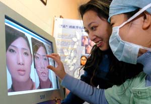 盛夏季節(jié),一幕幕整容“大戰(zhàn)”在城市中上演。各類整形美容機(jī)構(gòu)紛紛打出青春牌,“丑小鴨變成耀眼明星”的溫情廣告頻繁見諸媒體。與此同時,整容熱、考駕照熱和旅游熱,正在成為這個暑假學(xué)生中最為流行的“三熱”,其中整容熱更是居于首位。 “一邊是‘求美者’從肚臍穿孔到大變臉的迫切要求,一邊是沒日沒夜?fàn)幹瓘V告的電話,我都快看心理醫(yī)生了!”一位整容專科醫(yī)生如此形容近期風(fēng)行的整容熱潮。