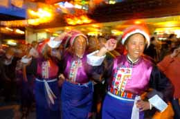 藏族大媽在香格里拉縣獨(dú)克宗古城歡跳“鍋莊”舞。本報記者:秦晴