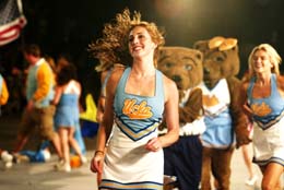 在旅游節(jié)的開幕式上,來自美國加州大學(xué)洛杉磯分校的啦啦隊上場表演。本報記者:鄭悅 攝 |
