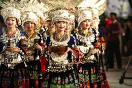 9月15日晚,在第十八屆上海旅游節(jié)的序幕上,黔東南苗族侗州自治州的姑娘們以酒為禮獻(xiàn)與觀眾。 本報記者:鄭悅