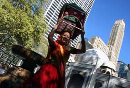 9月23日,在美國紐約曼哈頓,一名印度女子在泰姬陵模型前跳舞。為了紀(jì)念印度獨立60周年,印度旅游和文化部與印度產(chǎn)業(yè)聯(lián)合會在此舉行了為期四天的文化推廣活動。