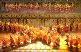 11月5日,第八屆中國(guó)藝術(shù)節(jié)在湖北省武漢市開(kāi)幕。圖為演員在開(kāi)幕式晚會(huì)上表演歌舞《大江的祝!。