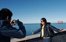 天氣轉(zhuǎn)涼游客不斷 青海湖今冬不歇業(yè)