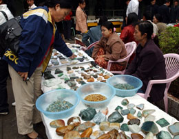 瑞麗毗鄰緬甸,是緬甸出口翡翠的最大陸路通道,我國最重要的珠寶交易集散地之一。瑞麗寶玉石行業(yè)的固定資產(chǎn)約為五億元,形成了原料—加工—批發(fā)—零售一條龍的產(chǎn)業(yè)鏈,2006年被評為“中國珠寶玉石首飾特色產(chǎn)業(yè)基地”。