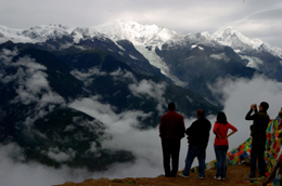 幾位游客在觀賞梅里雪山。 本報記者:秦晴