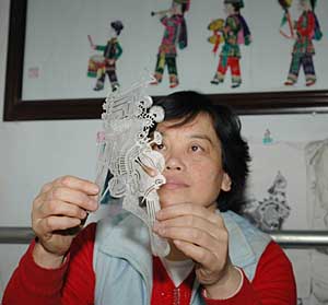 記者日前走進山西省侯馬市趙翠蓮女士家里時,她們一家人正忙著制作一批關(guān)公頭像造型的皮影。這些關(guān)公皮影不再是演戲的道具,而是要用木框裝裱起來掛在墻上作為一種精美的裝飾品。 趙翠蓮告訴記者,有許多新婚家庭和政府部門來訂購這種裝框的皮影,用做家居裝飾和饋贈紀(jì)念品,這種新式皮影一年來使她們家增收了三萬多元。趙翠蓮說,看皮影戲的人越來越少了,開發(fā)出用于欣賞和收藏的皮影作品是傳統(tǒng)民間藝術(shù)家自我調(diào)整、適應(yīng)時代的方式。 皮影戲最早誕生在兩千年前的西漢,成熟于唐宋時代的秦晉豫三地,盛極于清代。今年50歲的趙翠蓮從19歲開始從事皮影的表演和制作,曾拜皮影大師廉振華先生為師學(xué)習(xí)皮影雕刻,被譽為山西省民間藝術(shù)大師。 皮影本身蘊含著深厚的文化底蘊和收藏價值,而且色彩鮮艷,造型精美,具有很好的裝飾性。從2006年開始,趙翠蓮給傳統(tǒng)皮影裝上木框并將它們推向市場銷售,取得了市場認(rèn)可。