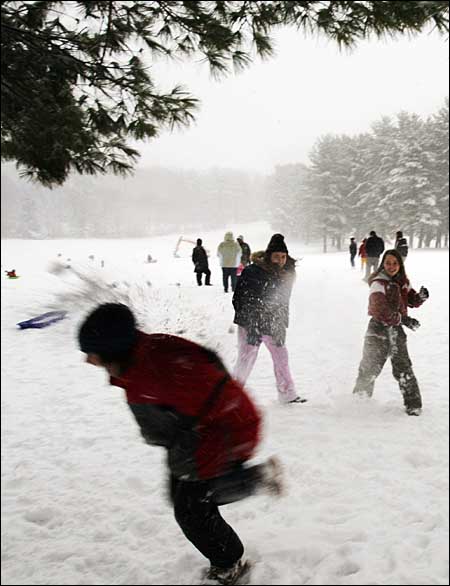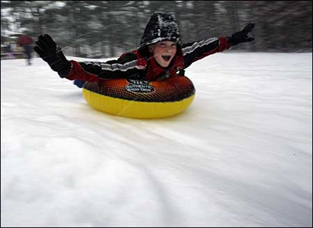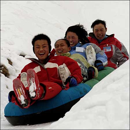人們?cè)谘┲墟覒颍M情享受雪趣。