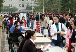 當(dāng)日,海南省近年最大規(guī)模的高職高專畢業(yè)生專場招聘會在?诮(jīng)濟職業(yè)技術(shù)學(xué)院舉行。超過400家單位提供了4700多個工作崗位,參加招聘會的高職高專畢業(yè)生有7500多人。據(jù)了解,2008屆高職高專畢業(yè)生當(dāng)前就業(yè)形勢良好,部分專業(yè)十分緊俏。