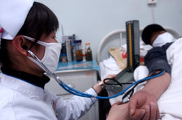 1月9日,患者王永康正在蘭州大學第一醫(yī)院濟困病床上接受護士的檢查。 據(jù)甘肅省衛(wèi)生廳最新統(tǒng)計,目前甘肅全省14個市、州總計設(shè)置濟困病床3808張,累計收治病人11117人,減免醫(yī)療費用1270.9萬元,在全國第一個實現(xiàn)了濟困病床全省覆蓋的目標。2007年10月起,省衛(wèi)生廳又調(diào)整了濟困病人住院費用減免的額度,擴大了濟困病人住院的病種范圍,使得全省濟困病人住院人數(shù)和減免費用總額每月都有大幅增長,受益面和受惠額度翻番。 |