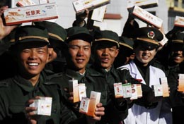 連日來,武警總部配發(fā)給武警高原部隊(duì)的復(fù)方丹參丸、高原護(hù)膚霜、21金維他等高原特殊藥品運(yùn)抵雪域高原后,武警拉薩市支隊(duì)及時(shí)足額地把藥品分發(fā)到全體官兵手中,把武警總部黨委首長的關(guān)心送到基層戰(zhàn)士的心坎上。