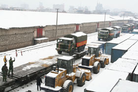 2月13日,支援電網(wǎng)搶修的載重牽引車抵達六盤水。當日,由成都軍區(qū)派出增援貴州搶修供電線路的解放軍官兵和載重牽引車順利到達六盤水,確保在2月25日前全面完成六盤水電網(wǎng)抗冰保電及災后重建任務(wù)。