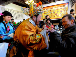 2月14日,是農(nóng)歷初八,山西平遙古城在春節(jié)期間推出“縣太爺拜年”、“財神爺賜福”等特色旅游表演,讓游客在欣賞平遙古城的同時,體驗晉商故里的濃情民俗,感受年文化的魅力,受到游客的歡迎。