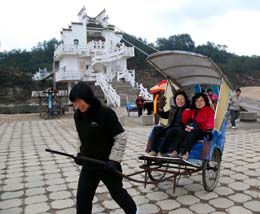 安徽黃山市前段時(shí)間遭遇的雪災(zāi)造成旅行團(tuán)退團(tuán)400多個(gè),當(dāng)?shù)匦羌?jí)飯店接待量大幅下降。目前,黃山的各大景區(qū)已全面恢復(fù)正常運(yùn)營(yíng),游客接待量開(kāi)始逐步回升。圖為韓國(guó)游客在黃山花山謎窟景區(qū)游覽。 |