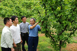 近年來,江西重點(diǎn)發(fā)展以“南橘北梨”為格局的果業(yè)基地。目前,全省果業(yè)種植規(guī)模達(dá)610萬畝,產(chǎn)量160萬噸,帶動(dòng)了廣大農(nóng)戶致富。圖為江西德安縣河?xùn)|鄉(xiāng)后田村果業(yè)大戶張泗煌(右一)在給果農(nóng)講解早熟梨的栽培技術(shù)。