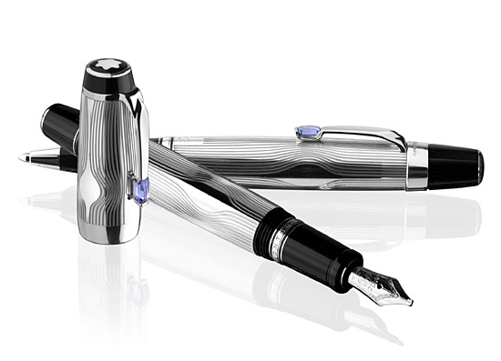 萬寶龍日前推出了全新的“波希米亞阿拉伯之舞藍晶石”系列。該系列的墨水筆、圓珠筆及簽字筆以純銀精鑄,筆桿表面飾以精致的刻紋線條,與烏亮的樹脂筆頭形成悅目對比。尤為值得一提的是,這三款新作的筆夾均飾以閃爍蔚藍色晶石,延續(xù)了波希米亞書寫工具系列的設(shè)計特色。