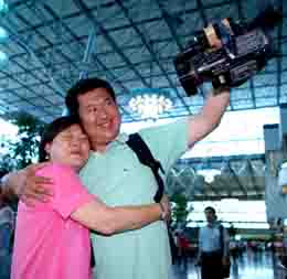 7月13日,臺灣導(dǎo)游潘女士(左)和大陸游客在臺北桃園機(jī)場惜別。當(dāng)日,大陸居民赴臺旅游首發(fā)團(tuán)結(jié)束歷史之旅。大陸居民赴臺旅游首發(fā)團(tuán)的680名游客自7月4日開始在臺的旅程,沿途均受到了臺灣同胞的熱情歡迎和接待。幾天來,大陸游客們先后游覽了日月潭、阿里山、墾丁、太魯閣、臺北故宮博物院等知名景點(diǎn)。 |