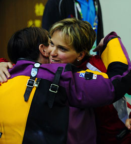 “我并不知道我得到的是首金,當(dāng)志愿者告訴我時(shí),我非常高興。最后一槍我的感覺也很好,但是不知是什么原因只打了9.5環(huán)”,瓦多維喬娃在賽后略帶遺憾地對(duì)記者說。