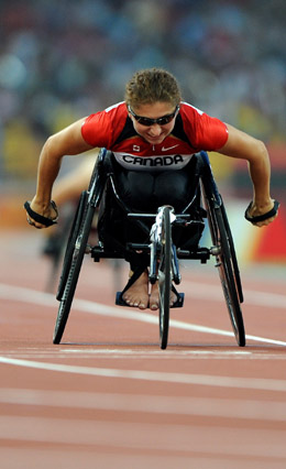 9月15日,加拿大選手選手史迪威在比賽中。當日,在國家體育場進行的北京2008年殘奧會女子100米T52級決賽中,史迪威以19秒97的成績奪冠,并打破世界紀錄。