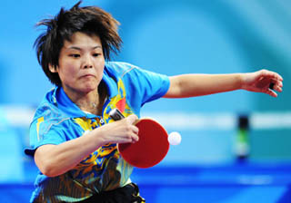 9月15日,中國選手范蕾在比賽中回球。當日,在北京2008年殘奧會乒乓球女子團體F6-10金牌爭奪賽中,中國隊以3比1戰(zhàn)勝波蘭隊,奪得冠軍。