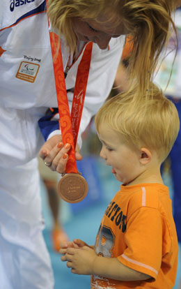 荷蘭隊媽媽隊員與寶貝分享快樂[圖]