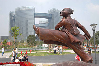 | 日前,2008中國杭州錢潮時刻·第三屆西湖國際雕塑邀請展在杭州錢江新城開展,吸引了不少市民前來觀展。新華社發(fā)(朱引煒