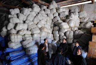 甘肅省隴南市文縣民政局倉(cāng)庫(kù)中剛剛運(yùn)來(lái)的棉衣。