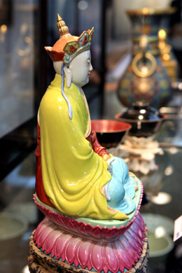 10月23日,華辰2008年秋季拍賣會新聞預(yù)展在北京舉行。這是在新聞預(yù)展上拍攝的拍品清乾隆“粉彩地藏菩薩”。