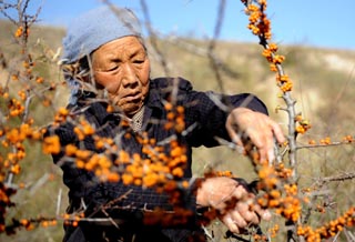 內蒙古鄂爾多斯是我國重要的沙棘產地,沙棘保存面積達300多萬畝,占全國沙棘總面積的70%。沙棘作為治理水土流失的重要灌木樹種,為遏制當地高原水土流失發(fā)揮了重要的作用。近年來,鄂爾多斯市引進幾家大型沙棘加工企業(yè),使沙棘在發(fā)揮生態(tài)效益的同時也產生了很大的經濟效益,項目區(qū)內農民每年從沙棘種植、管護、摘果等上面人均增加收入近千元。