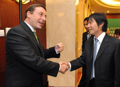 聯(lián)合國(guó)副秘書(shū)長(zhǎng)、聯(lián)合國(guó)環(huán)境規(guī)劃署執(zhí)行主任阿齊姆·施泰納(左)與羅紅對(duì)2009中國(guó)兒童環(huán)保繪畫(huà)大賽充滿信心。
