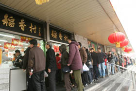每逢元宵、端午和中秋,許多老北京都講究到稻香村買上點(diǎn)兒元宵、粽子或月餅,而稻香村門店前蜿蜒排起的長龍也是京城節(jié)日一景。雖然是北京的百年老號,稻香村主營的卻是南味食品,而且在競爭激烈的京城食界“百年不老”,個中緣由頗耐人尋味。