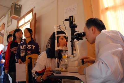 11月20日,一位中山眼科中心志愿者服務(wù)隊的成員在廣東山區(qū)河源市龍川縣為患者進(jìn)行手術(shù)。由中山大學(xué)中山眼科中心24名醫(yī)護(hù)人員組成的志愿者服務(wù)隊,當(dāng)天在廣東山區(qū)河源市龍川縣展開為期三天的“關(guān)愛視覺燃點光明”護(hù)眼直通車活動。他們免費為山村青少年進(jìn)行視力篩查,并帶領(lǐng)當(dāng)?shù)蒯t(yī)生一同進(jìn)行白內(nèi)障手術(shù)。中山眼科中心志愿者服務(wù)隊成立于1997年,服務(wù)小時總量超過4000小時。 |