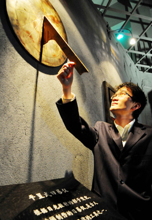 位于福建晉江的時(shí)間收藏館讓人們了解了時(shí)間的由來、時(shí)間的價(jià)值。該館共分為時(shí)間由來、時(shí)間產(chǎn)品、時(shí)間互動(dòng)等主題展區(qū)。據(jù)介紹,目前時(shí)間收藏館共搜集了古今中外200多件各種與時(shí)間等有關(guān)的鐘具等。圖為觀眾在觀看古代判斷時(shí)間的仿制品。