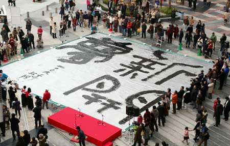 廣島巨幅書法作品表達新年的美好愿望