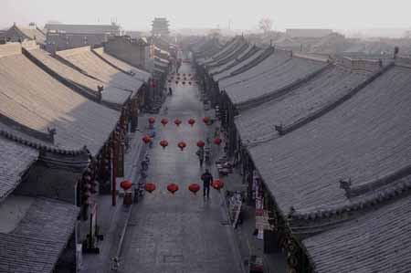 隨著春節(jié)臨近,山西平遙古城內(nèi)的“年味”越來越濃。今年春節(jié)期間,平遙古城內(nèi)將舉辦“特色中國(guó)年”系列活動(dòng),平遙戶籍的城鄉(xiāng)群眾,可憑本人身份證免費(fèi)參觀全縣納入一票通的開放景點(diǎn)。從2004年開始,平遙古城就每年在“名城紀(jì)念日”、“文化遺產(chǎn)日”等節(jié)慶期間多次免費(fèi)開放景點(diǎn),今年的免費(fèi)開放時(shí)間為2008年12月18日至2009年3月31日,比往年有所延長(zhǎng)。圖為掛滿燈籠的平城。 |