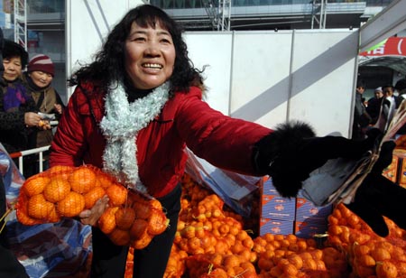 1月14日,衢州橘農(nóng)翁云仙高興地賣出一袋又一袋的橘子。當(dāng)日,衢州柑橘(胡柚)杭州春節(jié)促銷活動在杭州舉行。面對柑橘銷售的嚴(yán)峻形勢,衢州市委、市政府專門出臺政策,采取落實組織領(lǐng)導(dǎo)、市場開拓、綠色通道、單位幫扶、信貸保障等12個方面的舉措,幫助橘農(nóng)解決“賣橘難”問題。
