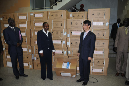 1月22日,中國駐塞內(nèi)加爾大使盧沙野(右)向塞內(nèi)加爾衛(wèi)生部部長蒂亞姆(Safiatou Thiam)在達(dá)喀爾轉(zhuǎn)交中國贈(zèng)予塞內(nèi)加爾的抗瘧藥品。根據(jù)中塞兩國醫(yī)療合作協(xié)定,中國政府當(dāng)天向塞內(nèi)加爾政府贈(zèng)送第二批價(jià)值200萬元人民幣的抗瘧藥品。2007年4月,中國已向塞內(nèi)加爾贈(zèng)送了同等價(jià)值的抗瘧藥品。