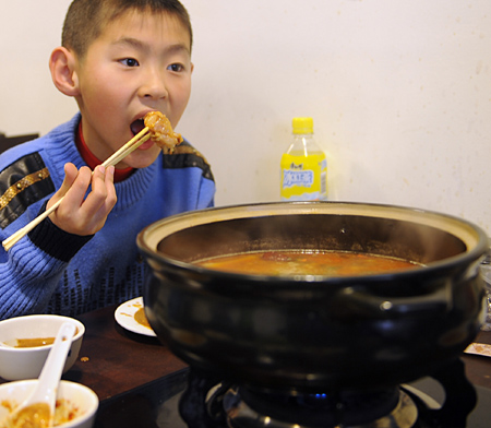 春節(jié)期間,“筋頭巴腦”店成為許多市民選擇的聚餐地點,喝一口濃香的醬湯,吃一塊爛熟的帶筋牛肉,觥籌交錯,其樂融融。相傳這是一種起源于中國明朝的食品,用火鍋的方式烹制而成,包含牛肉、土豆、油麥菜、中草藥等多種成分,于2008年冬天開始“進駐”長春。