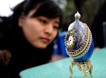春節(jié)期間,中國(guó)科學(xué)院武漢植物園推出系列民俗活動(dòng),游客在武漢植物園里除了能欣賞奇花異草外,還能觀賞剪紙、面塑等傳統(tǒng)的手工藝以及新穎的蛋雕工藝品,一些游客在驚嘆這些精雕細(xì)刻的工藝品同時(shí),還購(gòu)買一些手工藝品回家收藏。圖為一位女孩被鵝蛋制作的首飾盒吸引。