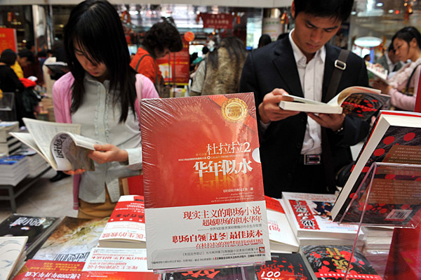 新春開(kāi)工之后,在廣州工作的年輕人利用各種機(jī)會(huì)抓緊時(shí)間學(xué)習(xí),為自己充電,以應(yīng)對(duì)國(guó)際金融風(fēng)暴可能帶來(lái)的職業(yè)危機(jī)。圖為幾位青年讀者在廣州購(gòu)書中心翻看企業(yè)管理類的書籍。