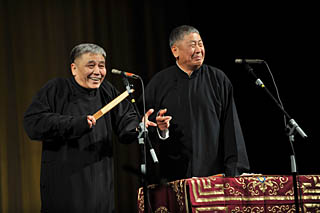 2月14日情人節(jié)晚上,當(dāng)記者來到位于天津市繁華商業(yè)街和平路與哈爾濱道交口上的中國大劇院小劇場門口采訪時(shí),驚訝地發(fā)現(xiàn)小劇場的走廊、舞臺側(cè)面和臨時(shí)座位上,都坐滿了人。臺上長袍馬褂的演員們機(jī)智幽默,一舉手一投足,逗得臺下觀眾前仰后合,笑聲不斷,整個(gè)小劇場熱鬧非凡。 記者了解到,如今的天津相聲茶館也如同高檔影院、咖啡館等時(shí)髦消費(fèi)場所一樣,有了節(jié)日檔期,且越到節(jié)日,來聽相聲的觀眾就越多。以往到了春節(jié),天津茶館的相聲演出都會停業(yè)休息,也就是行話的“封箱”?墒沁@幾年,天津的相聲市場日益火暴,茶館和相聲演員們也改變了多年的老傳統(tǒng),采取了春節(jié)連市,很多茶館還特意安排了下午的相聲專場,有的觀眾從下午一直聽到晚上。 “2008年的圣誕平安夜專場,我們一直過了午夜12點(diǎn)才散場,場面非常紅火,觀眾反復(fù)要求演員返場!敝袊髣≡盒鼋(jīng)理石磊笑著對記者說,“今年過年的時(shí)候更是忙壞了,從初一到十五,我們一天都沒休,一天要演出兩場,下午晚上各一場,一場兩個(gè)半小時(shí)。就這樣,120個(gè)座位仍舊滿足不了觀眾的需求,我們還特地多加了幾場相聲專場! 活躍在天津多個(gè)茶館的、三大相聲團(tuán)體之一的“天津哈哈笑藝術(shù)團(tuán)”團(tuán)長宋勇告訴記者,相聲隊(duì)20多位演員如今平均每周都要演出十六七場,今年春節(jié)期間又額外加了十場,演完一場就要抓緊時(shí)間趕場去另一個(gè)茶館。石磊說:“今年剛過完年緊接著又是情人節(jié),我們情人節(jié)當(dāng)晚演到了11點(diǎn)半左右才散場,段子也從平時(shí)的六對相聲、一段快板延長到十多對相聲。”