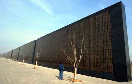 2月26日,一位年輕人在看地震紀念墻上的祭文。日前,河北省唐山市政府為更好地保護地震遺址,同時給廣大市民提供一個祭祀地震罹難者的場所,在建設(shè)中“唐山市地震遺址紀念公園”中建造的一座長約300多米,鐫刻上祭文和24萬罹難者姓名的地震紀念墻即將竣工。 1976年7月28日,河北唐山發(fā)生里氏7.8級地震,造成24萬人遇難。